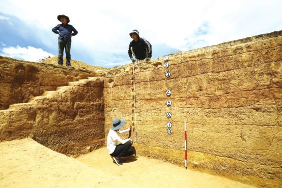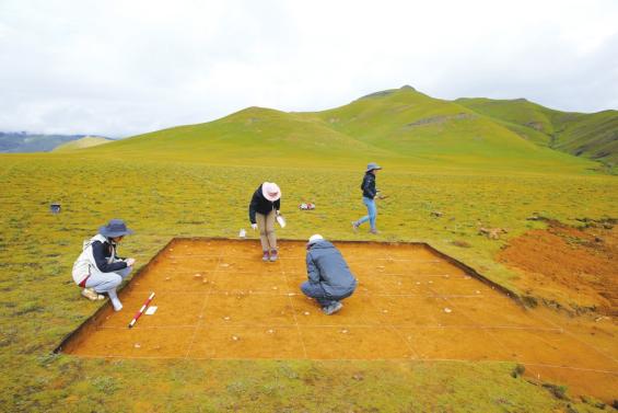 考古人员对皮洛遗址进行年代环境样品提取。
