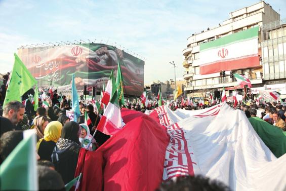 1月12日,在伊朗首都德黑兰,人们参加集会。新华社发