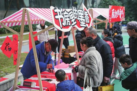 此外,下午的游园会设置了“邻里议事角”,结合写春联、非遗体验等摊位,收集居民关于公共空间改造、商户规范经营等建议7条。现场还提供趣味游戏、义剪等便民服务,由社区商家与志愿者共同承担,让服务与协商在互动中落地。