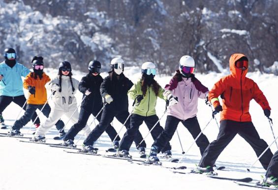 东南亚游客在成都西岭雪山滑雪。雷远东摄