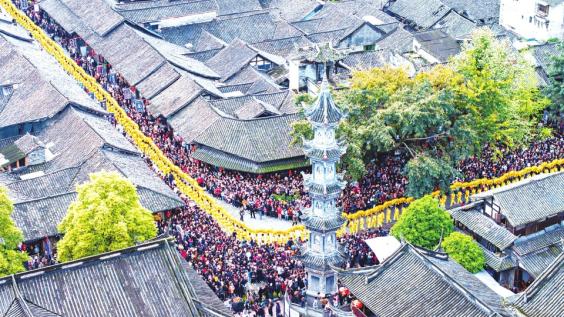 在成都崇州元通古镇,清明时节不仅有雨纷纷的诗意,还有一场持续了300多年的盛大民俗活动——元通古镇清明春台会。这个被誉为“川西第一大会”的民俗活动,还有“活着的《清明上河图》”的美称。2018年,元通清明春台会被列入四川省非物质文化遗产代表性项目名录,其最为壮观的“汇江老龙”巡游闻名遐迩,每年吸引大量游客到访。