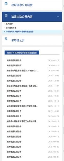 泌阳县市场监管局发布在当地政府网站的部分公告。网页截图