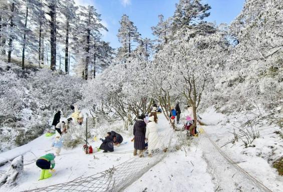 “趁着假期,我们专门从宜宾开车过来,就为了让孩子看看真雪。”在瓦屋山景区雪地中,游客王先生正举着手机,记录6岁女儿第一次挖雪球、堆雪人的兴奋瞬间。和王先生一样,许多家长选择在春节前带孩子“错峰”玩雪。重庆游客李定菊和女儿、小孙子专程来到瓦屋山游玩,她说,虽然娃娃年纪小,很多项目玩不了,但光是坐在雪橇板上被拉着走,孩子就很兴奋,说“下次还要来”。
