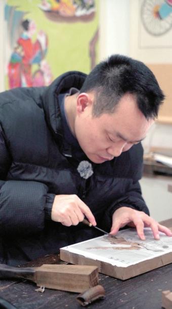 今年年画节期间,“80后”年画艺人陈刚的任务很有意思——和平时一样,坐在绵竹市孝德镇年画村的工作室里,该雕刻雕刻,该填色填色。无论进行到哪个环节,都是实实在在的年画制作现场展示。