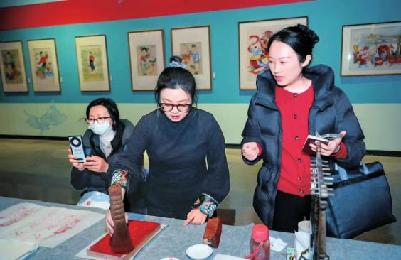 这也是当下很多年画手艺人在探索的事。在绵竹年画博物馆里,年画的内容有廉洁教育,也有以新年的生肖讲述传统故事。面对传统对开木门变为现代楼房的单扇防盗门,绵竹木版年画德阳市级非遗代表性传承人陈健,完成了“合二为一”的单扇门创新年画,将两位门神和谐地融入一幅45厘米见方的画幅中。当然,最好的传承是让非遗走进生活。一位名叫林国栋的绵竹年画艺人就通过制作陶版年画冰箱贴、磁吸式可拆卸年画挂件等文创产品,实现了非遗与日常生活的无缝衔接。