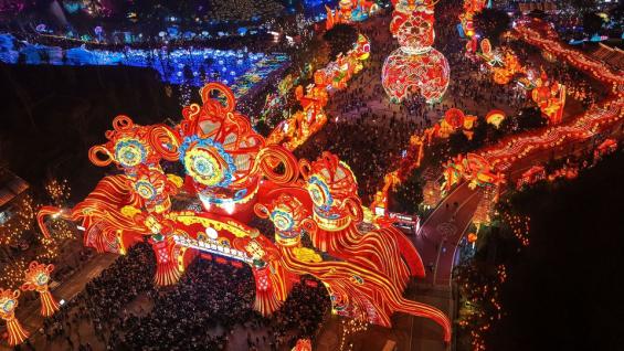 作为知名文化名片,自贡灯会吸引力持续凸显,今年客流表现亮眼。本届自贡灯会自开幕以来,截至2月23日共计接待游客104.3万人次,较去年同期增长13%,综合收入1.26亿元,较去年同期增长9.8%。其中,春节假期接待游客52.9万人次,综合收入7966万元。2月17日至22日,灯会第一场票均为售罄状态,景区多次发布“错峰提示”,门票收入位居全省景区首位。